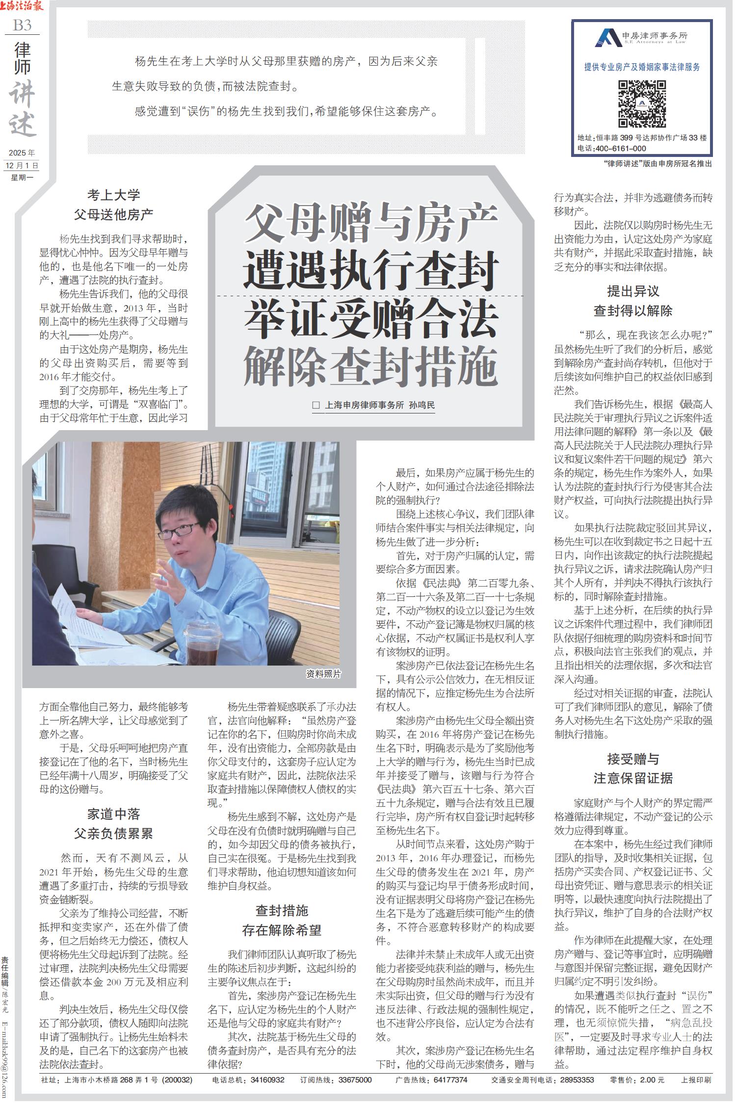 父母赠与房产遭遇执行查封 举证受赠合法解除查封措施