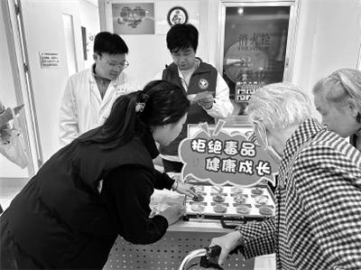 本报讯 今年12月1日是第38个“世界艾滋病日”。当天,为进一步推动艾滋病防治工作高质量开展,筑牢辖区居民禁毒防艾思想防线,营造全民参与的良好氛围,徐汇区田林街道的禁毒社工与志愿者在田林街道社区卫生服务中心的大厅里,开展了主题为“禁毒防艾联动,义诊科普同行”的禁毒防艾宣传活动。活动现场精心布置了禁毒防艾主题展区,第三代毒品科普展板、图文并茂的宣传手册及印有禁毒防艾标语的禁毒小礼品整齐陈列,吸引了众多就诊居民及家属驻足参与。