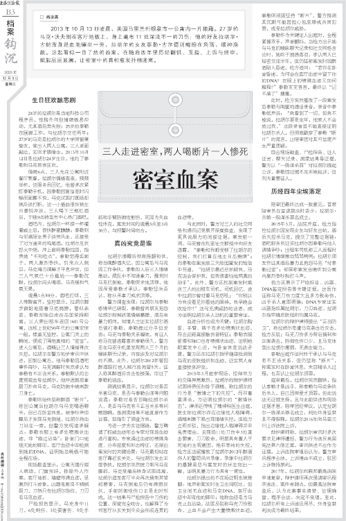 尸检报告显示,马克身中11刀,6处刺伤、3处要害伤、5处手部和手臂防御性割伤,死因为失血性休克,案发时间约凌晨3点至3点30分,与报警时间吻合。