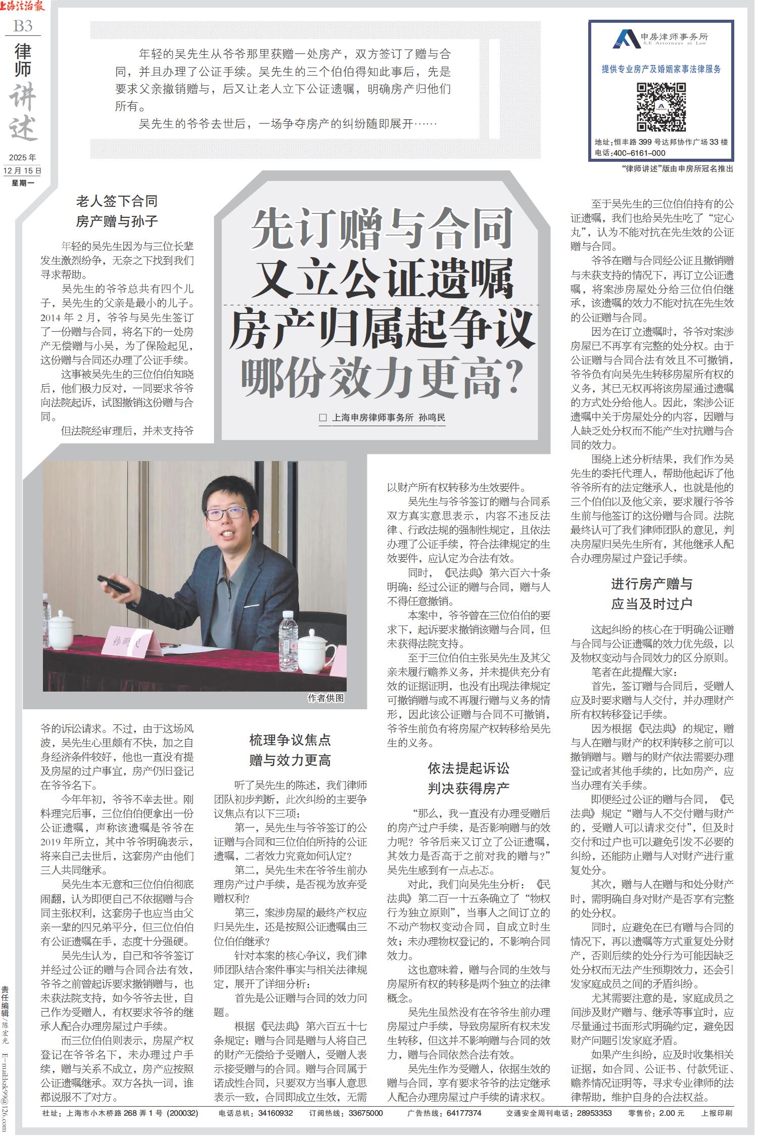 先订赠与合同又立公证遗嘱 房产归属起争议哪份效力更高?