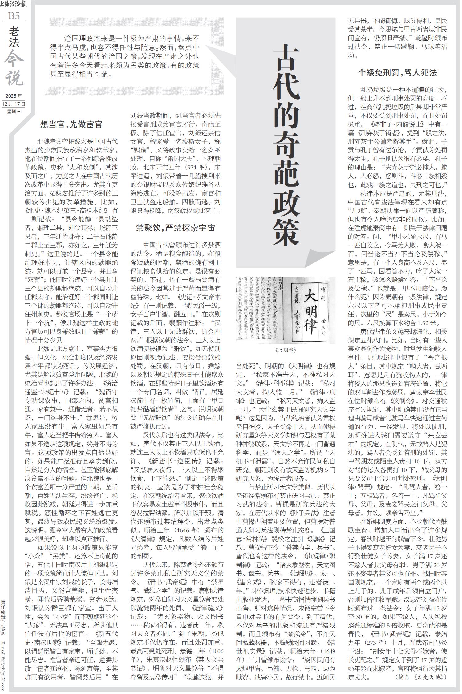古代的奇葩政策