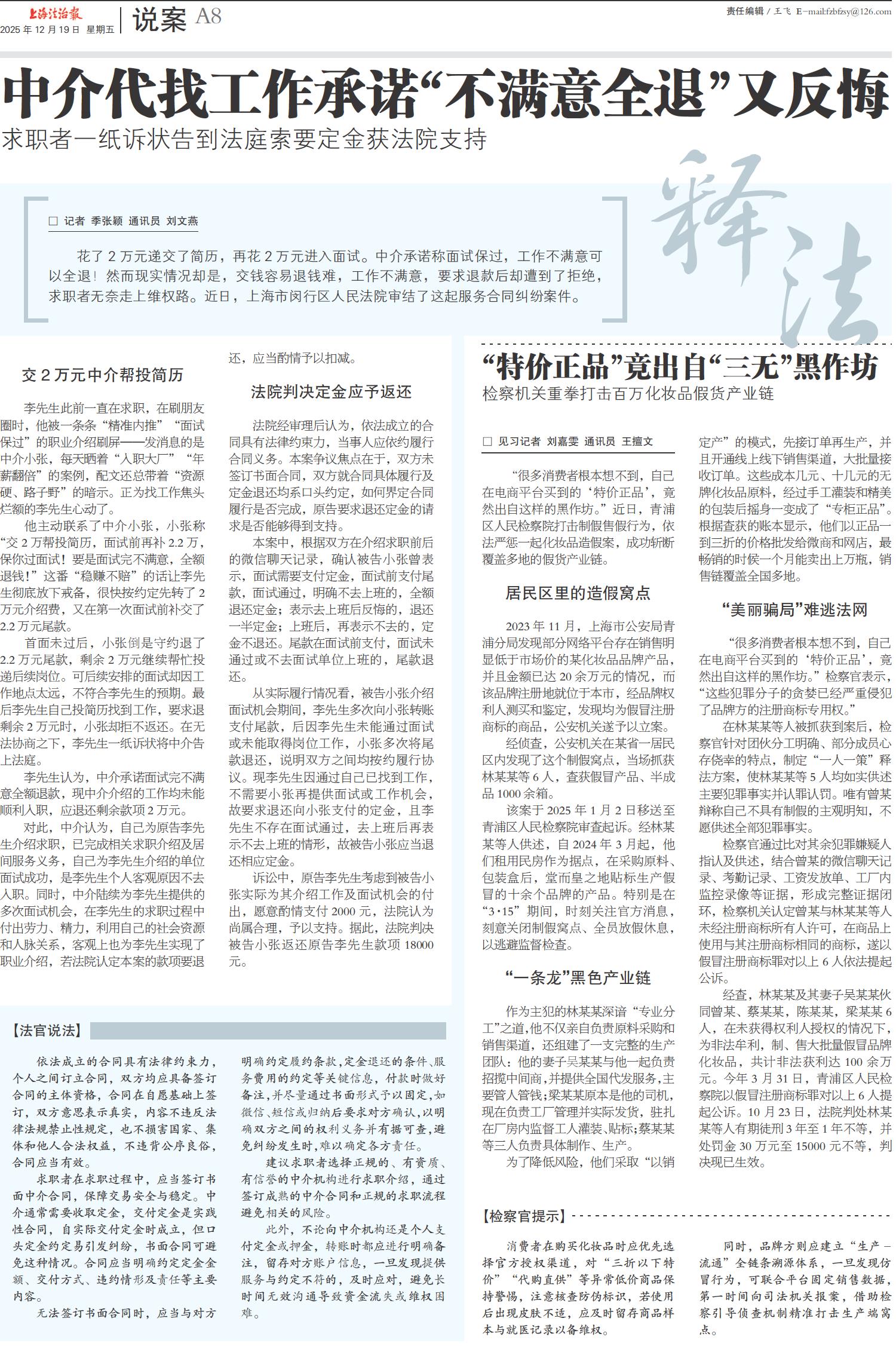 中介代找工作承诺“不满意全退”又反悔