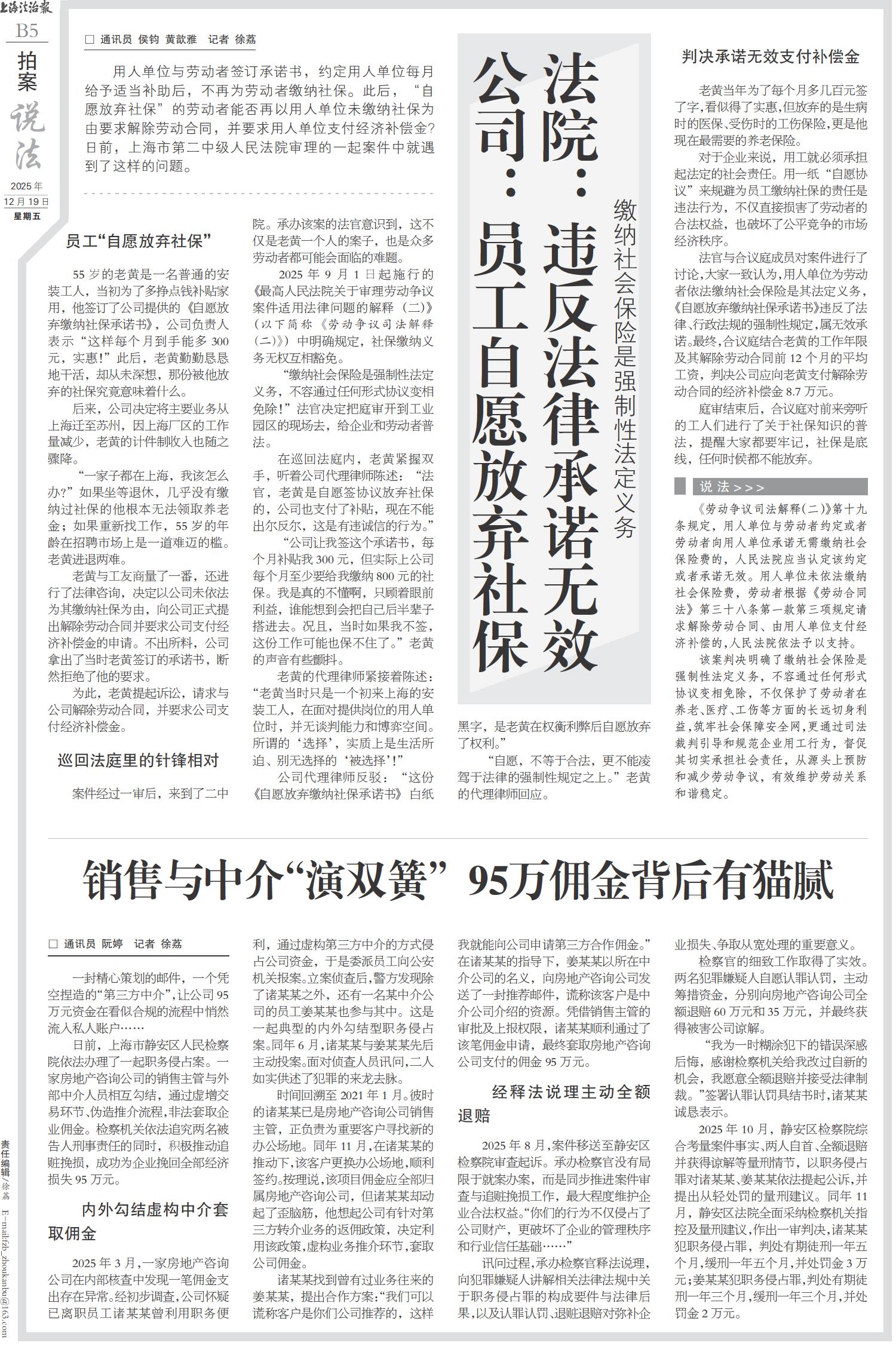 公司:员工自愿放弃社保 法院:违反法律承诺无效