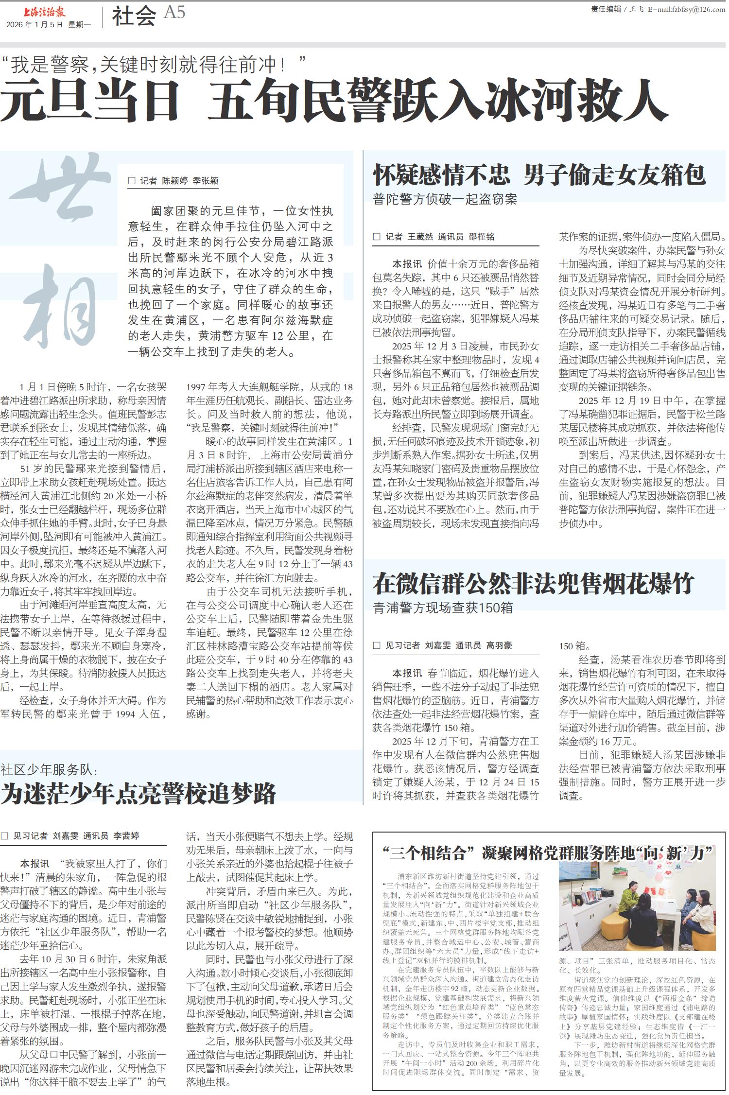 元旦当日 五旬民警跃入冰河救人
