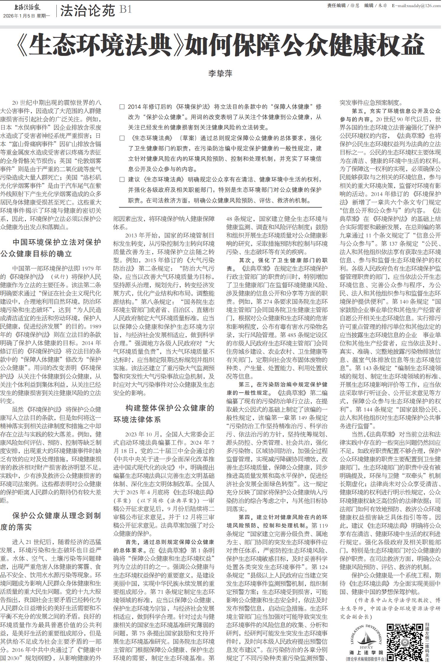 《生态环境法典》如何保障公众健康权益