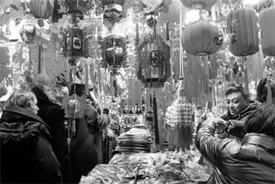 本报讯 农历马年新春即将来临。这几天,豫园福佑路小商品市场又开始热闹起来,生肖挂件、喜庆门贴、大红灯笼等各类传统吉祥饰品十分热销,前来选购的市民络绎不绝,就连一些外国游客也入乡随俗地买上几件,准备过个中国年。