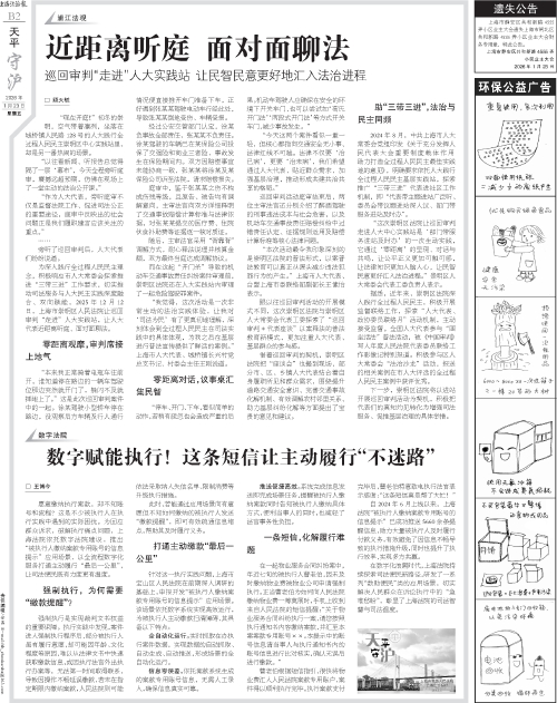 “我觉得,这次活动是一次非常生动的法治实践体验,让我对‘司法为民’有了更真切地理解,深刻体会到全过程人民民主在司法实践中的具体体现,为我之后在基层进行普法宣传提供了鲜活的案例。”上海市人大代表、城桥镇长兴村党总支书记、村委会主任王刚说道。