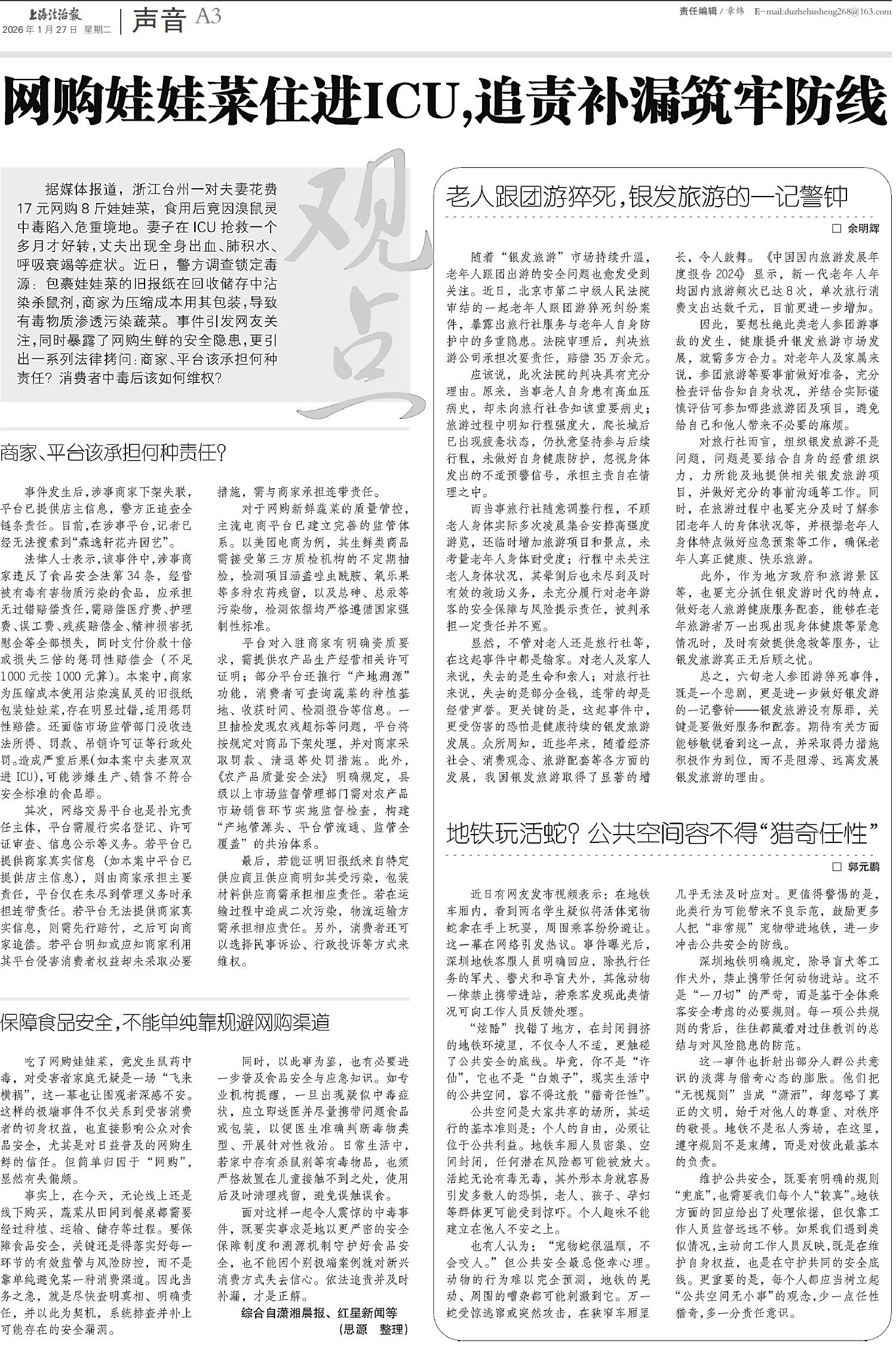 A01 头版 A02 重点 A03 声音 A04 平安 A05 城事 A06 社会 A07 说案 B01 法治青春 B02 律师视点 B03 实务探索 B04 档案钩沉 B05 投诉调查