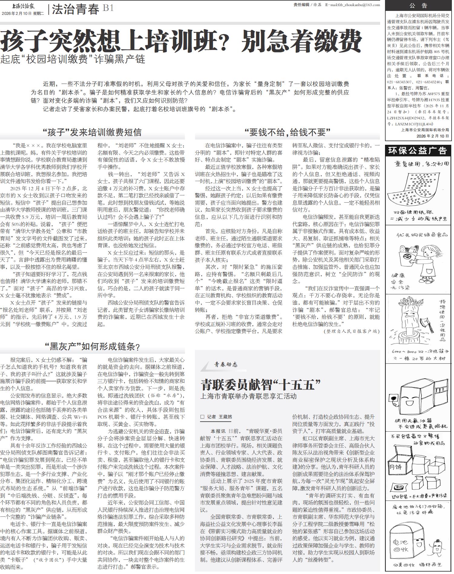 A01 头版 A02 声音 A03 平安 A04 城事 A05 社会 A06 说案 A07 中国 B01 法治青春 B02 律师服务 B03 实务探索 B04 档案钩沉 B05 投诉调查