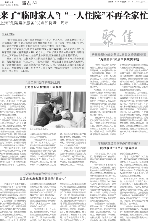 让专业的人做专业的事,让病房回归安静与尊严。“免陪照护”是对住院护理服务模式的改革与重塑,也是上海应对人口老龄化、持续改善就医体验的一次探索和实践。