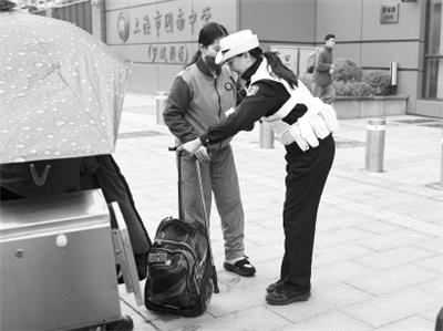 ◆ 昨天上午,园南中学门口,早已做好准备的徐汇交警和辅警队员们提前到岗,引导送学车辆快下快离,确保学生“校门口的安全”记者 王湧 摄