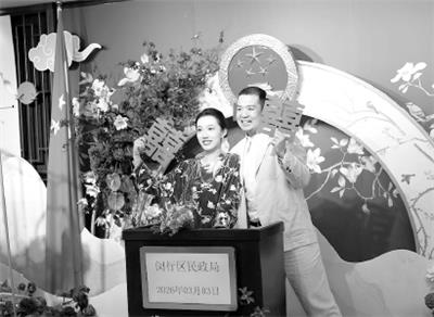 一对新人在闵行区民政局办理结婚登记
