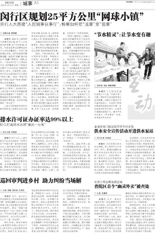 本报讯 3月22日至28日是第三十九届“中国水周”,为期一周的节水活动宣传周已拉开帷幕。在顾村公园举行节水宣传活动上,水务部门环保志愿者现场宣传保护水源,旨在倡导市民节约用水,杜绝雨污混接的违规行为。图为市民与机器人“节水精灵”互动,咨询相关节水知识