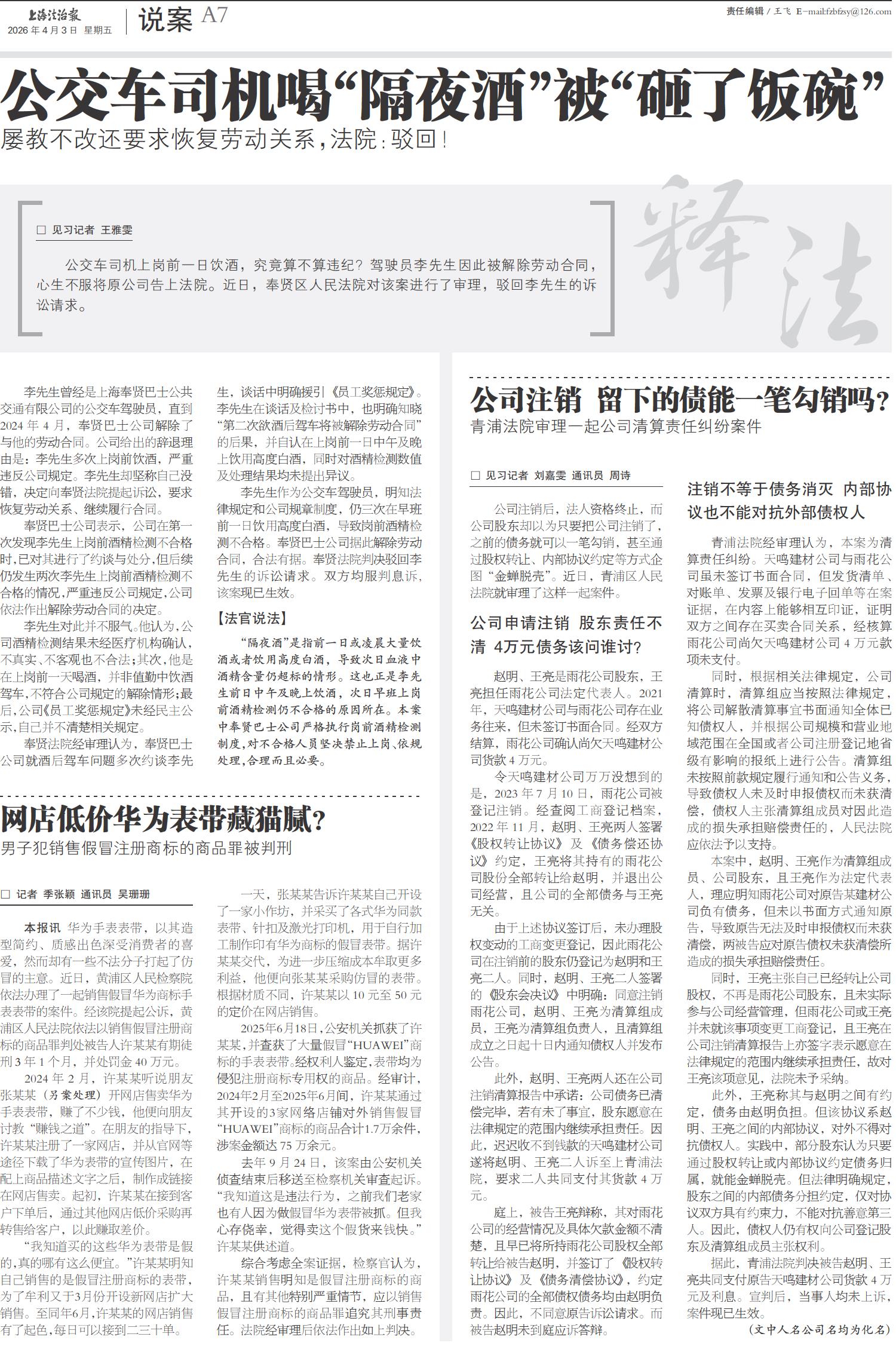 A01 头版 A02 重点 A03 声音 A04 平安 A05 城事 A06 社会 A07 说案 A08 中国 B01 投诉调查 B02 天平守沪 B03 法律人手记 B04 多元解纷 B05 拍案说法 B06 3/15在线 B07 法治剧焦 B08 PHOTO现场