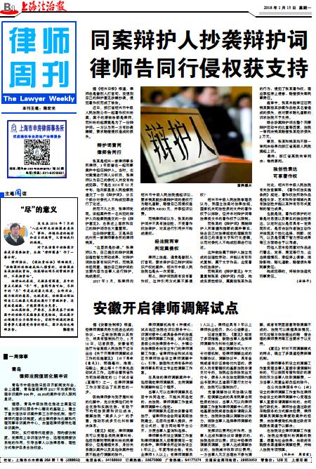 2018年01月15日 B01 :律师周刊 稿件来源:上海法治报