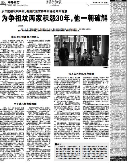 □刘永加 古往今来,除了常规的刑事案件、民事案件之外,还有一些比较特殊的民事案件,在侦办这些案件中,不仅需要法官的为民情怀,更需要法官的耐心和智慧。史料中清代法官判决的三起祖坟纠纷案就很