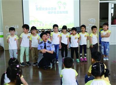 图为台上被“拐跑”的小朋友们在认真听民警的讲解,这次“被骗”的经历可谓是印象深刻
