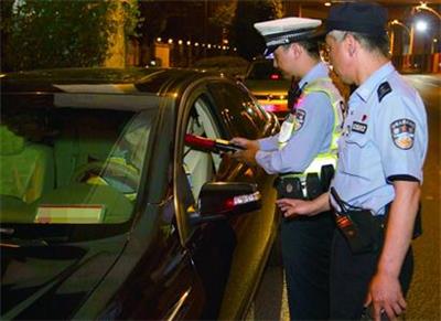 图为昨天凌晨,长宁交警在对途经车辆进行检查 记者 汪昊 摄影报道