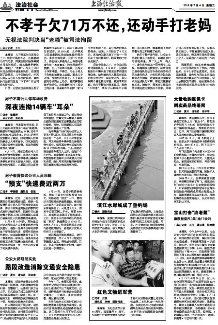 本报讯 儿子韩某欠母亲冯女士71万余元钱款不还,还屡屡动手打骂母亲。即便法院判决韩某需向母亲还钱后,韩某依然拒绝还款,做起了“老赖”。冯女士只好向宝山法院申请强制执行,没想到到了法院里,儿子还敢动手。昨天记者从宝山区人民法院获悉,最终执行法官对这名“不孝子”作出司法拘留决定。
