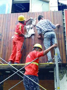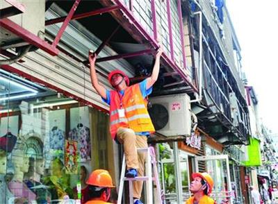 黄浦区拆除明显存在隐患的店招 杨奕 摄