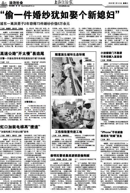 8月21日15时许,浦东公安分局孙桥派出所接到王女士报案。王女士是做婚纱礼服批发生意的,经常会将新进货的婚纱放在家中或是挂在院子里晾晒。据王女士回忆,从年初以来时有婚纱不翼而飞的现象。起初,每次少了一两件,王女士不以为然,但这次新进的婚纱,一次少了8件,其中两件更是用珍贵的羽毛制作而成,这让王女士心疼不已。