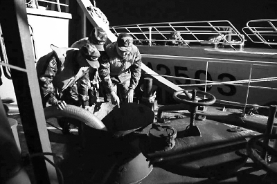 上海海警局相关负责人表示,走私油不仅破坏市场经济秩序,且来源不清、规格型号不明,存在极大安全隐患。目前,案件正在进一步侦办中。图为查私现场