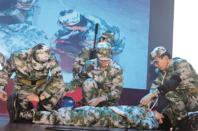 上海健康医学院进行了战地医疗救护现场展示谈乐达 摄