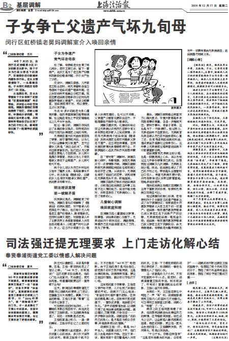 因被司法强迁时索要360平方米新居的要求得不到满足,奉贤奉浦街道居民王强成了一位“老信访”,对各方声音“油盐不进”。直到新调任的街道党工委副书记胡斌上门走访,以 “100%的努力”,做 “润物细无声”的工作,才一点点融化了王强心中的坚冰,在坚守法治底线的基础上,圆满解决司法强迁问题,也让王强住进了舒适的新家。