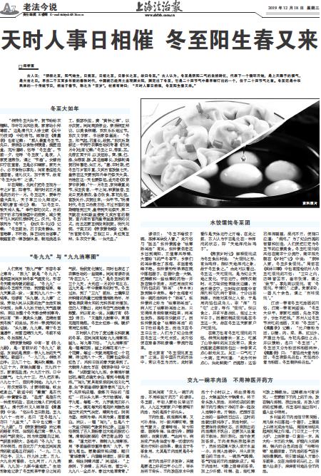 老北京有“冬至馄饨夏至面”之说。在中国古代的历法中,常以冬至为历元,此时被看作是天体运行之开端,在此之前,古人认为宇宙是处在一种浑沌的状态,即“天地浑沌如鸡子”。
