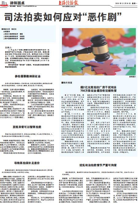■圆桌主持 陈宏光本期嘉宾 上海光大律师事务所 潘轶 上海尚法律师事务所 和晓科 上海中夏律师事务所 李晓茂 主持人: 11月26日,广东佛山顺德区法院在司法拍卖平台对一处查封房