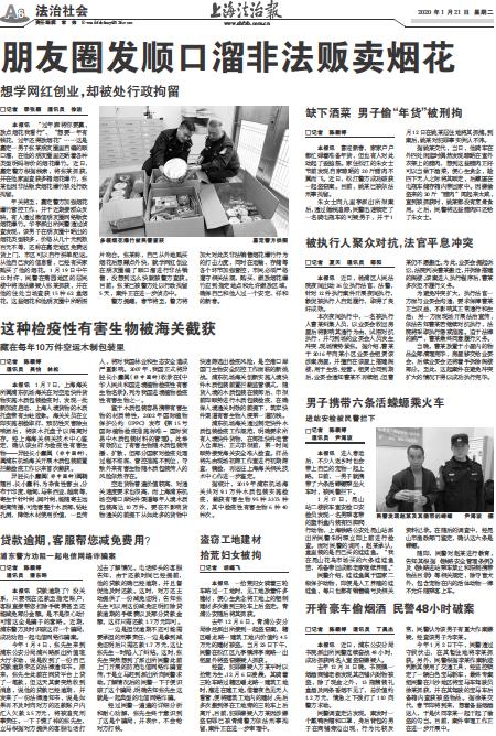 - 朋友圈发顺口溜非法贩卖烟花 □记者 季张颖 通讯员 徐波 本报讯 “过年麻将你要赢,放点烟花我看行”、“想要一年有钱花,过年还得放烟花”……这是嘉定一男子张某朋友圈里自编的顺口溜,在他的朋友圈里还晒着各种类型明码标