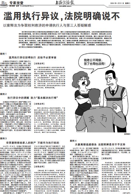 本期“专家坐堂”以案释法,帮助公众了解相关法律法规,为争取权利救济的申请执行人与第三人答疑解惑,向企图通过执行异议与执行异议之诉拖延执行者敲响警钟。