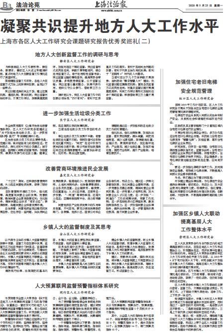 地方人大创新监督工作的调研与思考 静安区人大工作研究会 为积极顺应人大工作新形势、新任务、新要求,静安区人大成立专题调研组,重点对地方人大创新监督工作情况进行了调查研究。 围绕增强监督工作实