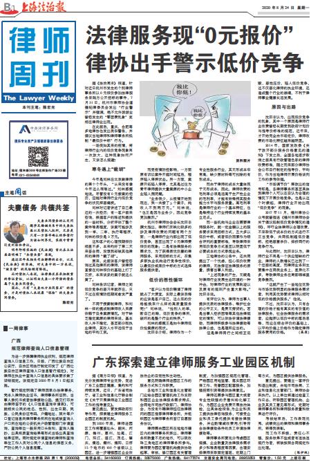 据《法治周末》报道,针对近日杭州市发生的个别律师事务所以0元报价参加法律服务采购方公开招标的事件,7月31日,杭州市律师协会道德纪律委员会发出 “行业警示”并强调,绝不允许旅游业曾经发生的“零团费乱象”变相在律师业出现。