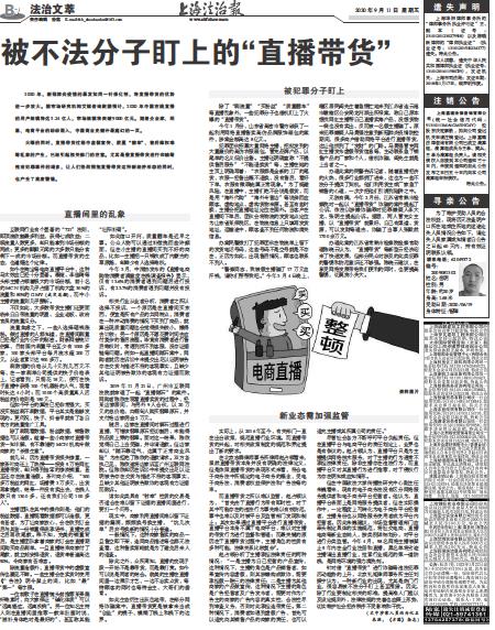 针对借“直播带货”进行诈骗等违法犯罪活动趋势的上升,北京礼矩律师事务所主任刘振宁认为,一种新行业的出现,尤其是热门行业,很容易被不法分子盯上甚至围猎。因此,除了行业要制定相关的标准,提高准入门槛以及设定规则外,法律法规的完善也应跟上形势,切实维护社会经济秩序不受影响和干扰。