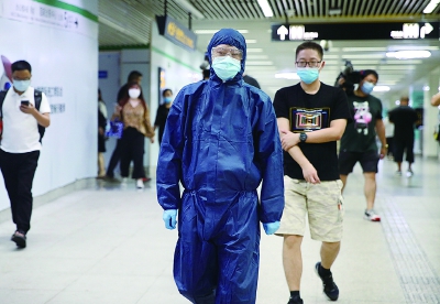 “呼叫值班室!安检口发现一名体温异常的乘客,需进行体温复测”,站厅工作人员接到信息后,立即将其带至5号口外的临时观察点进行人员交接,并做好信息登记。昨日,距离第三届进口博览会开幕还有50天,上午,在徐泾东地铁站内,开展了一场地铁疫情防控专项演练,现场模拟了站内发现乘客体温异常、进站未佩戴口罩、出现身体不适等突发情况的应急处置。