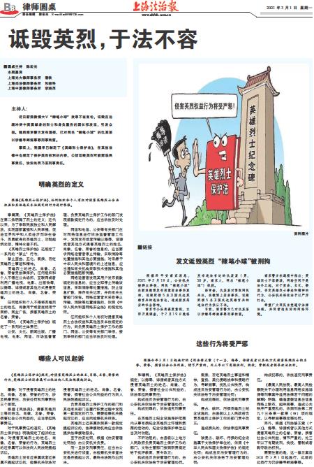 和晓科:《英雄烈士保护法》规定:以侮辱、诽谤或者其他方式侵害英雄烈士的姓名、肖像、名誉、荣誉,损害社会公共利益的,依法承担民事责任;