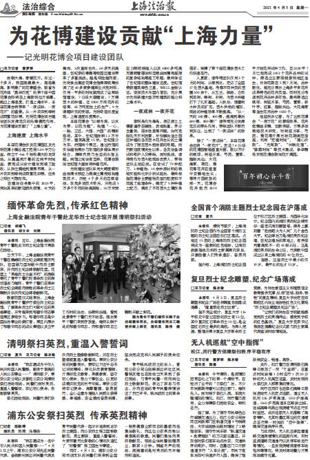 据介绍,上海消防烈士纪念园位于松江区烈士陵园,为园林化设计。纪念园内的消防英烈纪念碑形似一座老式消防瞭望塔,碑身上篆刻着“赴汤蹈火为人民”几个金色大字。纪念碑后方是消防英烈纪念墙,在纪念墙后的草地上,有序排列着高低不一的42根石柱,这是消防英烈的生命之柱,代表新中国成立以来上海消防的42位烈士。