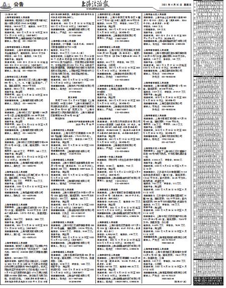 上海法治报公告 A06 上海法院自主网络司法拍卖公告 2021-04-16 2 2021年04月16日 星期五