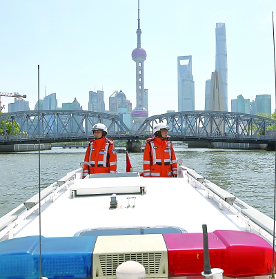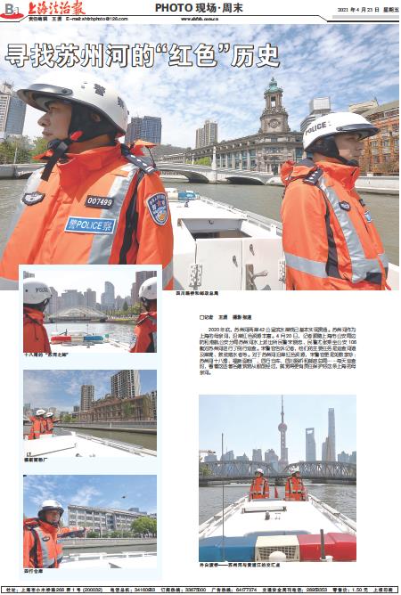2020年底,苏州河两岸42公里滨水岸线已基本实现贯通。苏州河作为上海的母亲河,沿岸红色资源丰富。4月20日,记者跟随上海市公安局边防和港航公安分局苏州河水上派出所民警宋晓忠、民警尤张乘坐公安106艇对苏州河进行了例行巡查。宋警官告诉记者,他们的主要任务是巡查河道及岸堤、救助落水者等。对于苏州河沿岸红色资源,宋警官更是如数家珍:苏州河十八湾、福新面粉厂、四行仓库、四川路桥和邮政总局……每天巡查时,看着这些著名建筑物从眼前经过,就觉得更有责任保护好这条上海的母亲河。
