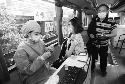 本报讯 日前,一辆蓝绿色的新冠疫苗流动接种车驶入虹口区欧阳路街道天宝华庭和金大地园区,为附近办公楼的企业员工和周边居民免费接种疫苗。