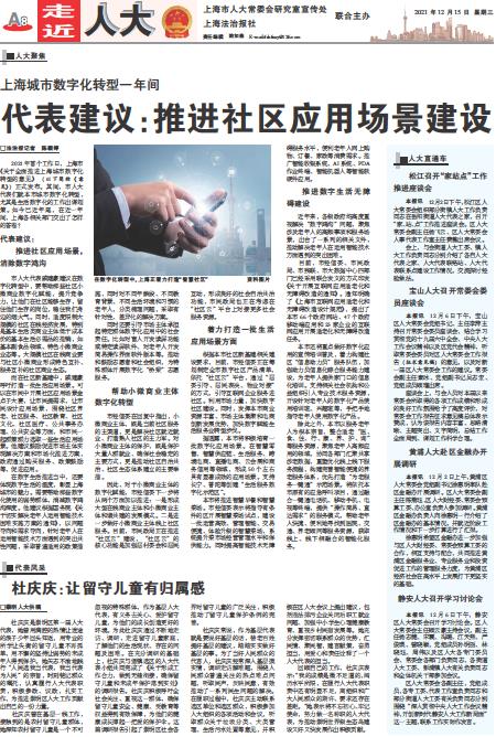- 代表建议:推进社区应用场景建设 □法治报记者 陈颖婷 2021年首个工作日,上海市《关于全面推进上海城市数字化转型的意见》 (以下简称《意见》)正式发布。其间,市人大代表们就本市城市数字化转型,尤其是生活数字化的工作出谋划策。