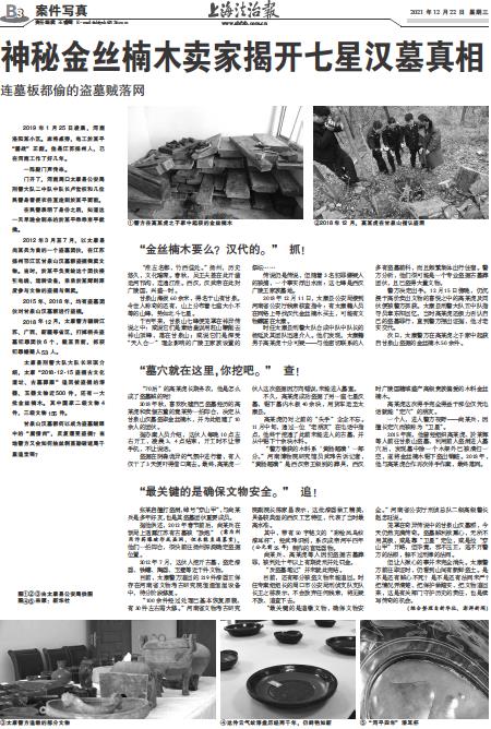 次日,太康警方在高某虎之子家中起获自甘泉山盗掘的金丝楠木50余件。