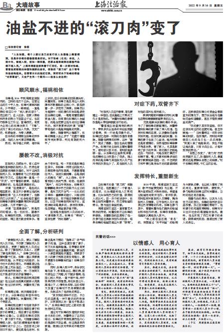 对于张峰从“滚刀肉”到“监狱画师”的转变,我有这样的体会:改造服刑人员是需要主管民警用心去做的一件系统工程。