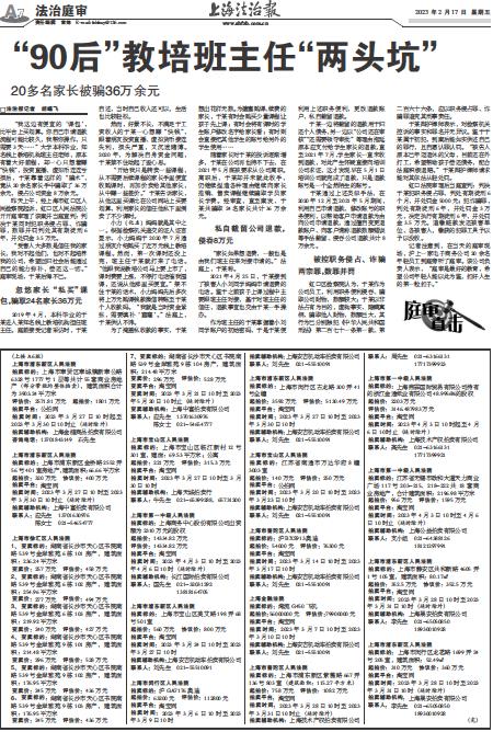 记者注意到,在当天的庭审现场,沪上一家电子商务公司20余名年轻员工到庭旁听了庭审。该公司负责人表示,“庭审是最好的教育,希望公司年轻人能以此为鉴,扣好人生的第一粒扣子。”