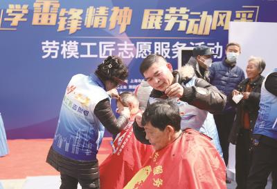 本报讯3月5日,由上海市总工会、上海市文明办、中共黄浦区委共同主办的“学雷锋精神 展劳动风采‘中国梦·劳动美’——劳模工匠志愿服务活动”在豫园商城开展。40余位劳模志愿者及劳模工匠志愿服务团队汇为周边市民带来劳模工匠志愿服务活动。理发验光、护眼护齿、法律咨询……看似寻常的40余个服务项目,却传递着不朽的雷锋精神与上海城市精神品格。 见习记者 沈媛 摄