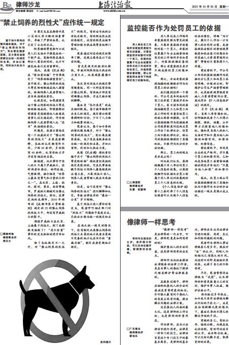 - “禁止饲养的烈性犬”应作统一规定 鉴于如今养狗的情况越来越多,对于“禁止饲养的烈性犬”,有必要在国家层面,至少是在省级层面出台统一的规定和名录,并加以宣传,同时加大执法力度。 □福建州驰律师事务所 周玉文 日前发生在成都崇州某小
