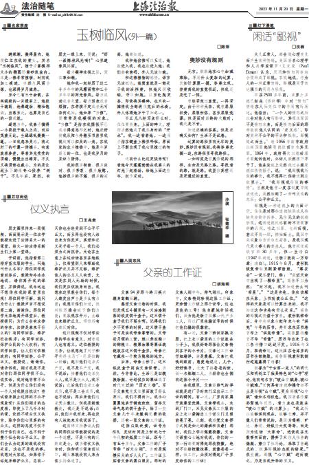 在我眼里,父亲最帅气的举动就是进厂子时向门卫出示工作证的瞬间。有一次,厂里向家属开放澡堂洗澡,父亲带我去,走到厂门口,只见父亲从工作服的左上衣口袋掏出工作证往门卫眼前晃了晃,此刻,我感觉父亲挥手之间是如此的潇洒和自豪!那时,我们上学都佩戴校徽,父亲便语重心长地对我说,你们的一言一行都要对得起那枚校徽,绝对不能给校徽抹黑,就像爸爸一样,做工作,必须对得起厂子里发给你的工作证!