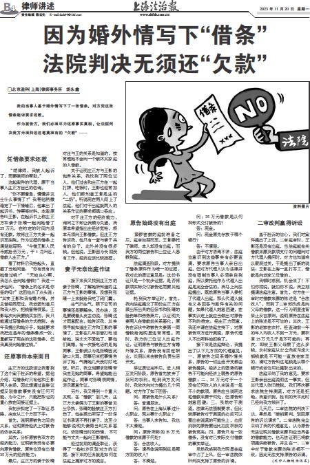 因为婚外情写下“借条” 法院判决无须还“欠款”