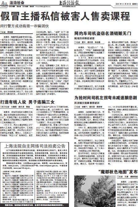 - 假冒主播私信被害人售卖课程 □记者 季张颖 本报讯 随着网络直播带货的兴起,一些不法分子将直播间当作了实施诈骗引流的途径。近日,有市民在直播间购买兼职赚钱课程时疑似遭遇诈骗。上海闵行警方接报后,随即开展调查,最终捣毁一个在